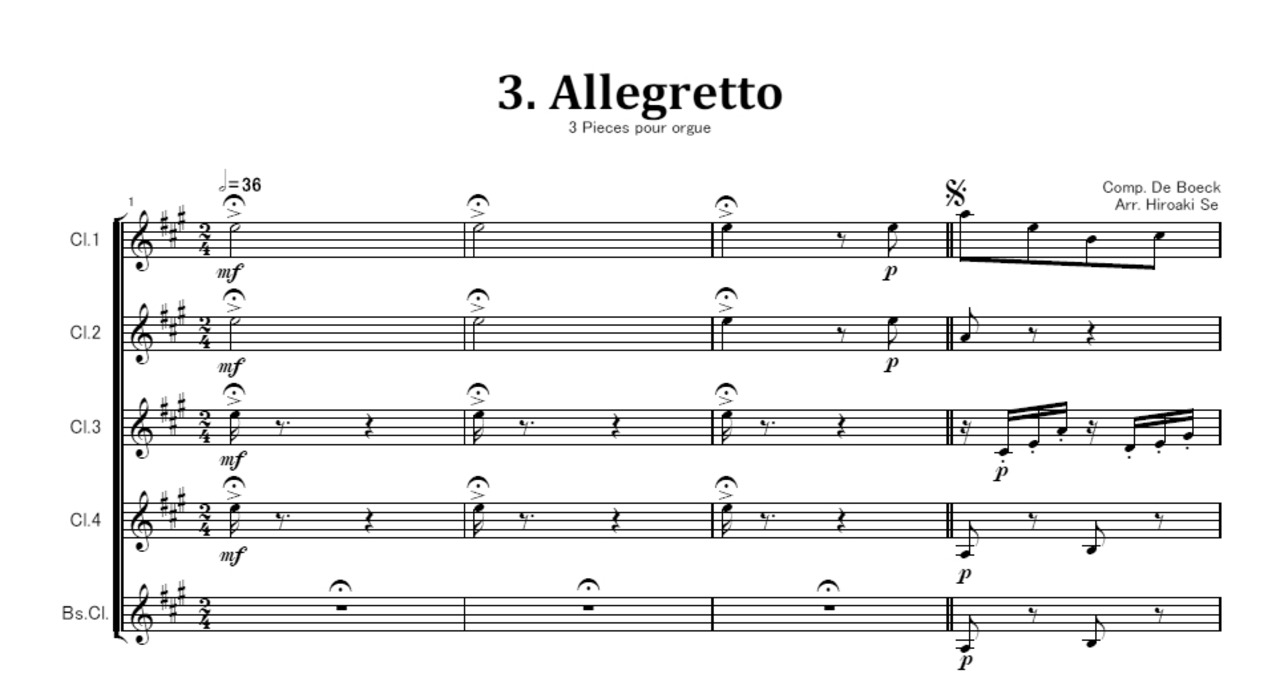 クラリネット五重奏 3つの小品から第3曲 アレグレット