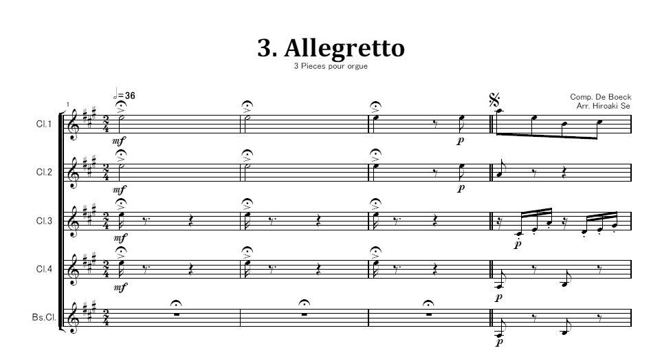 編成はCl.4本、Bs.Cl.です。
