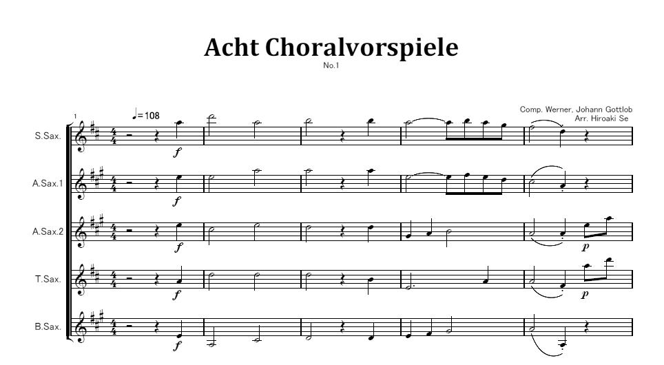 サックス五重奏 8つのコラール前奏曲から第1曲