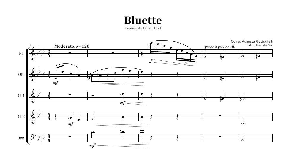 編成はFl.、Ob.、Cl.2本、Bsn.です。