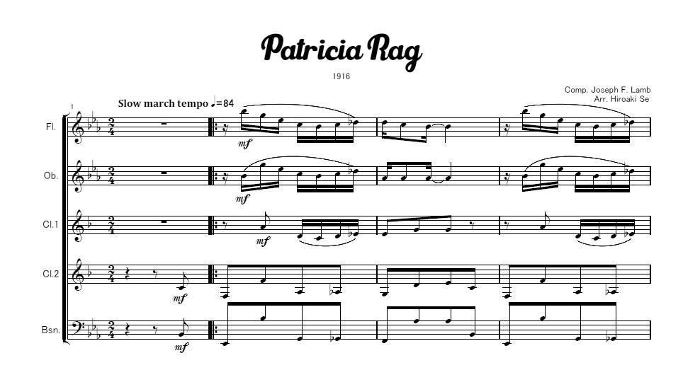「Patricia Rag」は、アメリカの作曲家ジョセフ・F・ラムによって1916年に作曲されたラグタイム作品です。