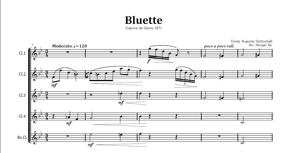編成はCl.4本、Bs.Cl.です。