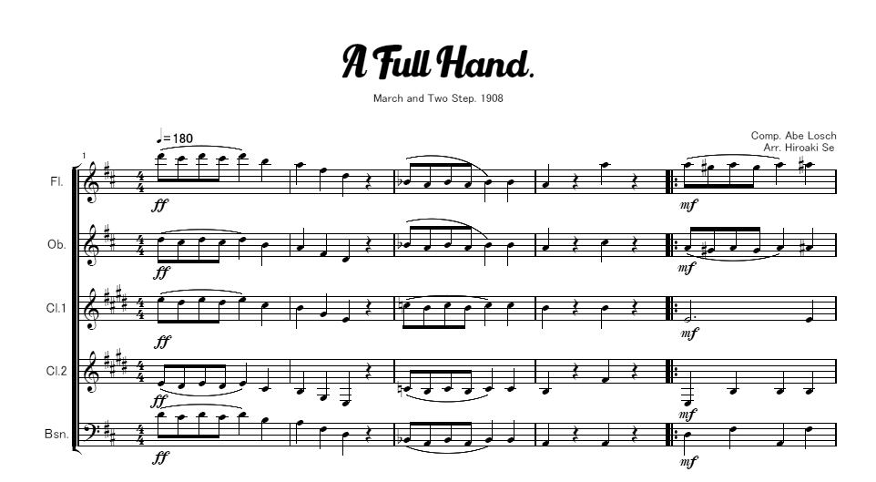 「A Full Hand. March and Two Step.」は、アメリカのラグタイム作曲家であるAbe Losch(エイブ・ロッシュ)によって作曲された楽曲です。