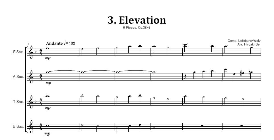 サックス四重奏 6つの小品 Op.38から3.エレヴァシオン