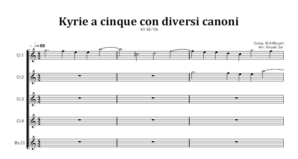 クラリネット五重奏 5声のキリエ(種々のカノン付き)KV 89