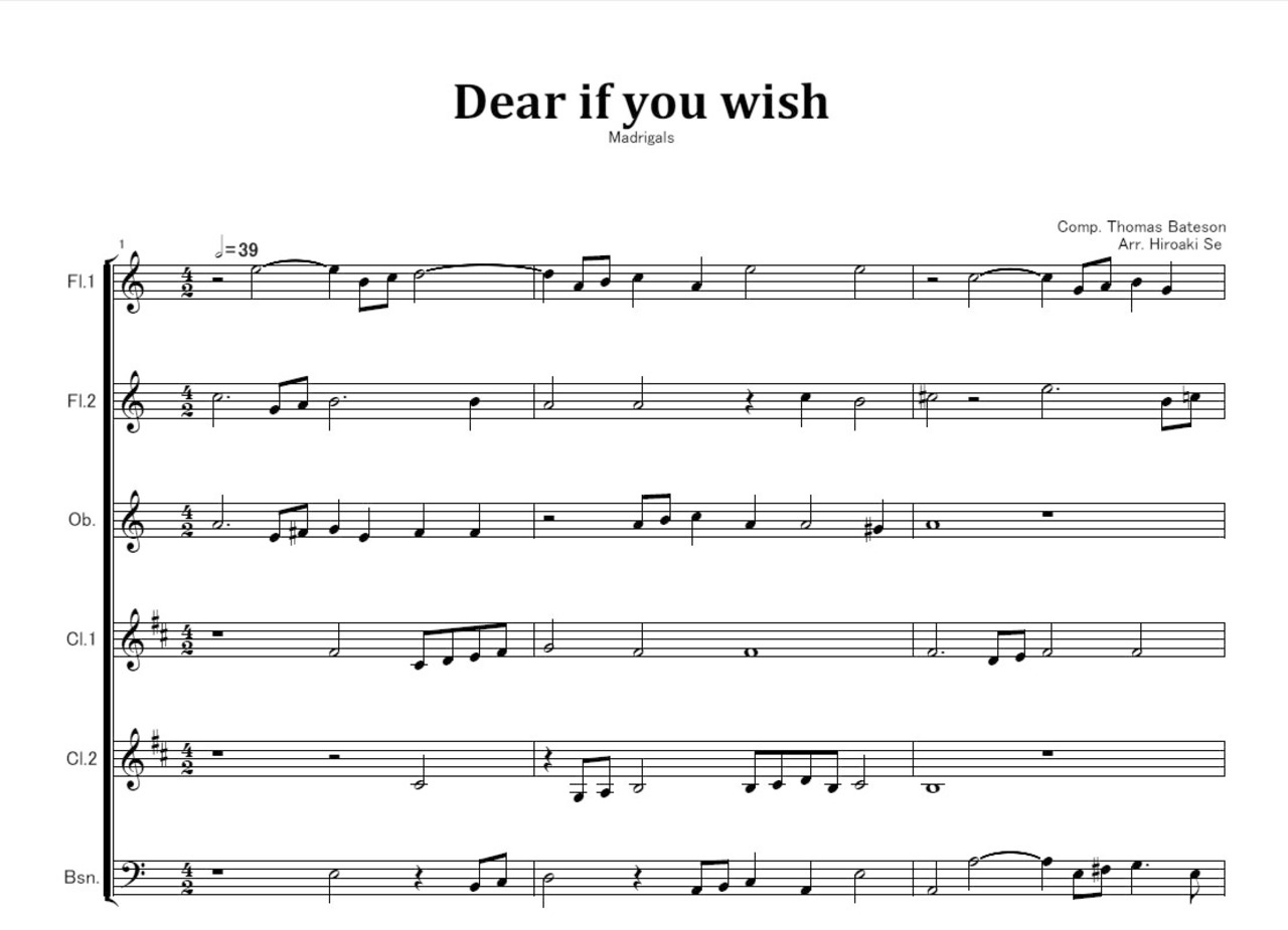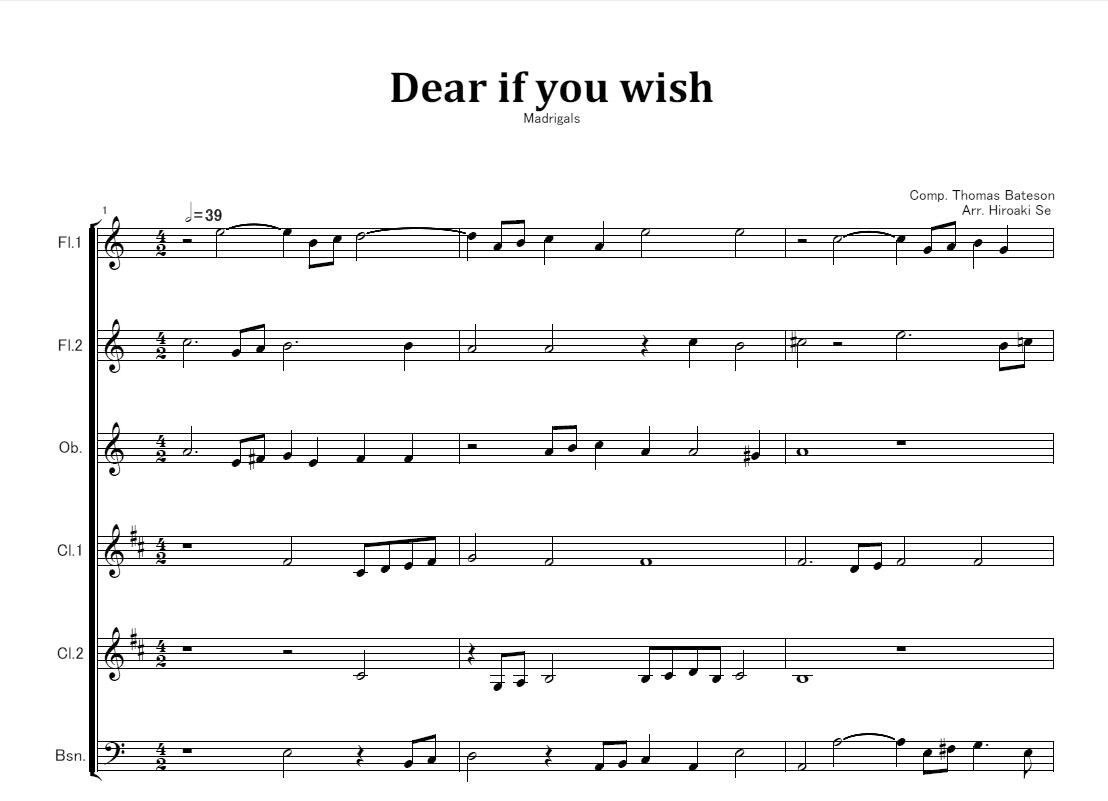 「Dear if you wish」は、イギリスの作曲家 トーマス・ベイトソン (Thomas Bateson) が作曲した6声のマドリガルです。