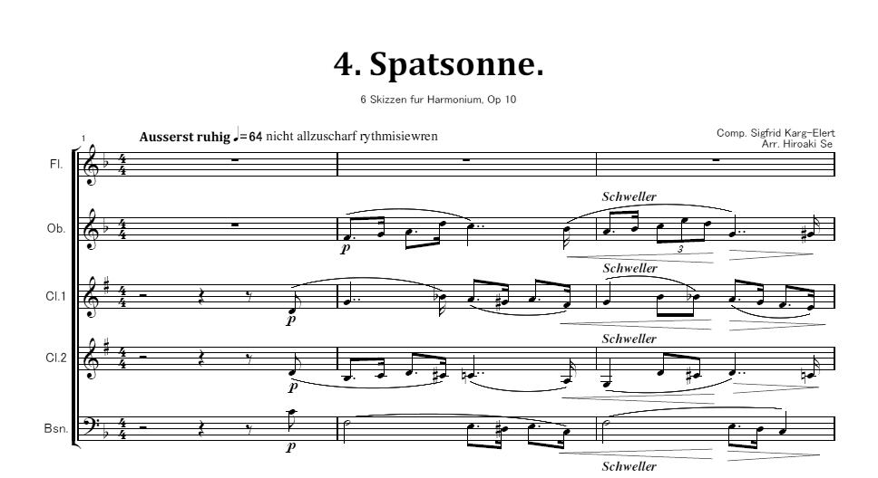 編成はFl.、Ob.、Cl.2本、Bsn.です。
