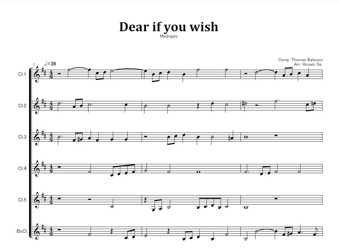 「Dear if you wish」は、イギリスの作曲家 トーマス・ベイトソン (Thomas Bateson) が作曲した6声のマドリガルです。