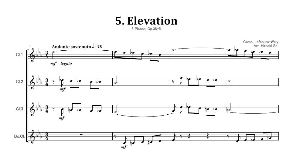 クラリネット四重奏 6つの小品 Op.38から5.エレヴァシオン