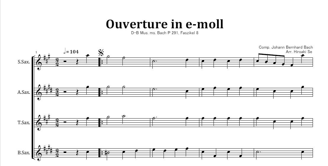 サックス四重奏 オーヴァーチュア組曲 ホ短調から