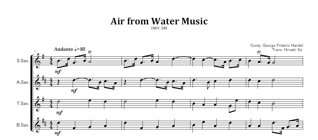 サックス四重奏 水上の音楽(Water Music)から5.エアー
