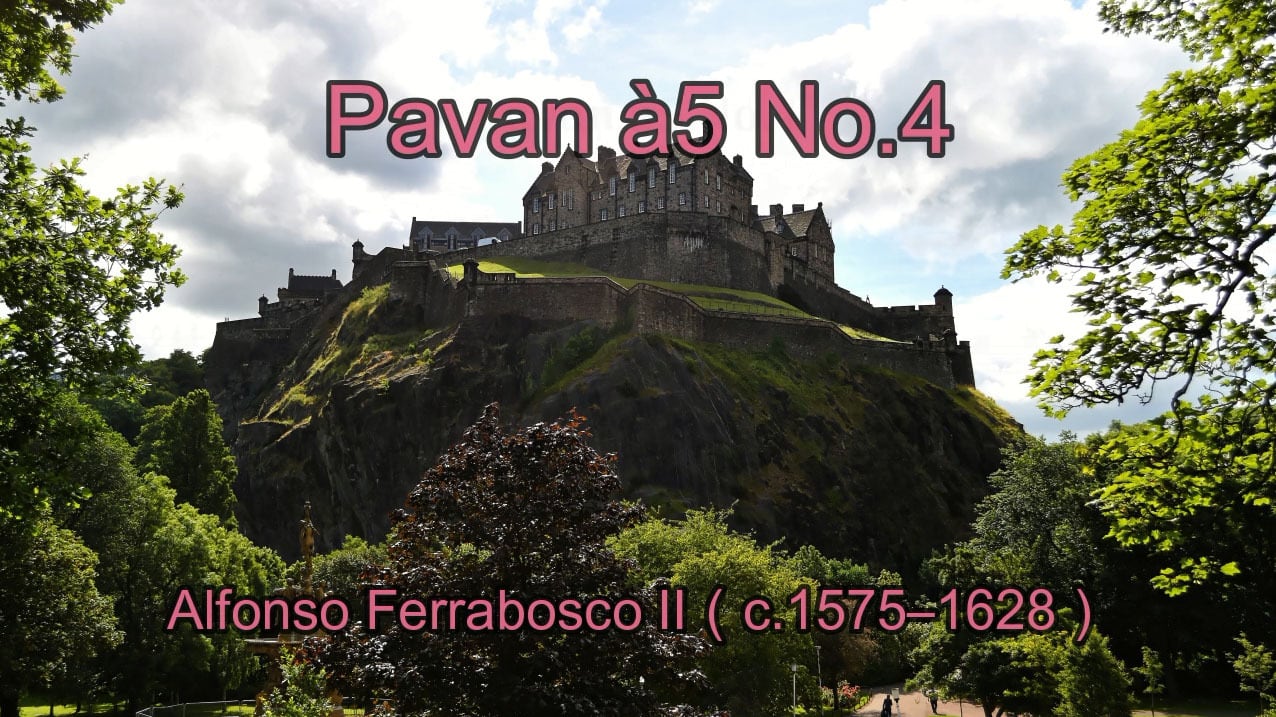 《Pavan à5 No.4》は、アルフォンソ・フェッラボスコ2世の5声パヴァーヌの中で、数音モチーフに縛られず旋律的に展開された作品で、荘重で抒情的な美しさを備えた合奏曲。