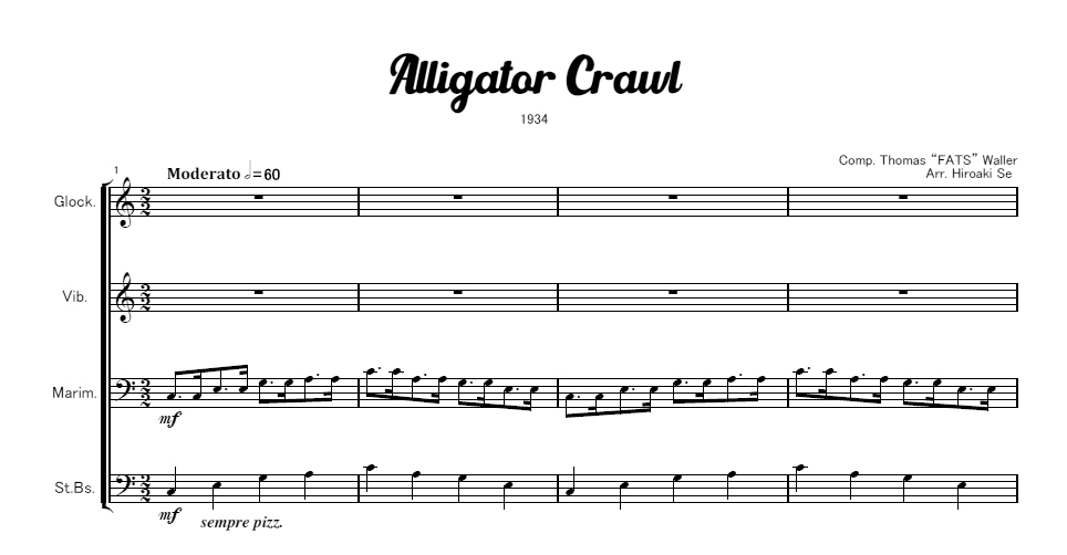 鍵盤打楽器とベース四重奏「アリゲーター・クロール」
