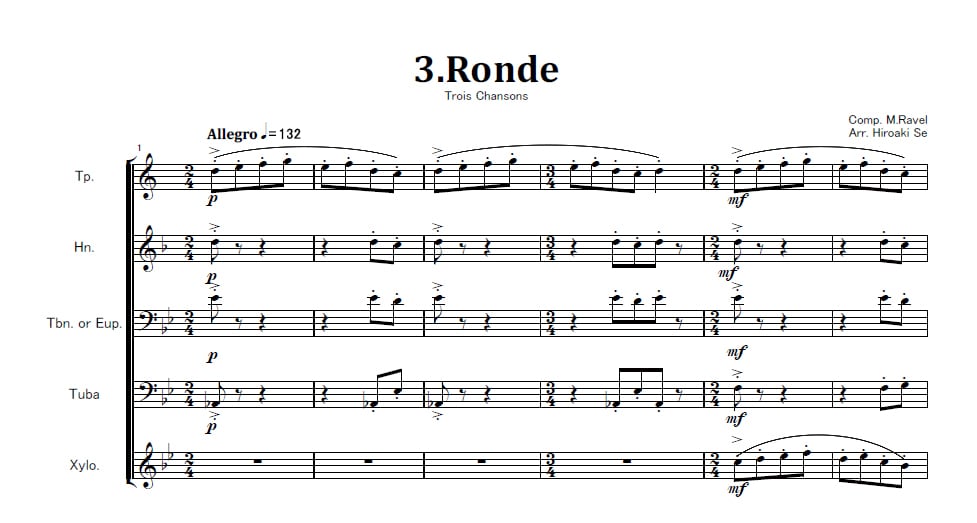 編成はTp.、Hn.、Tbn.またはEup.、Tuba、Xylo.です。