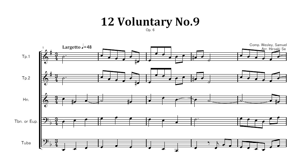 編成はTp.2本、Hn.、Eup.またはTbn.、Tubaです。