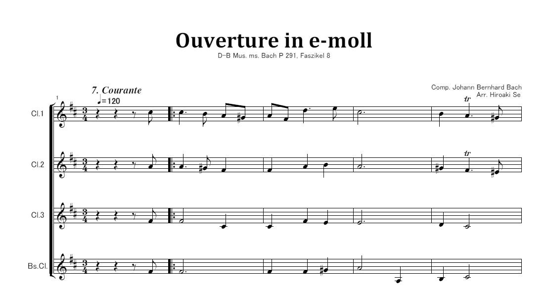 クラリネット四重奏 オーヴァーチュア組曲 ホ短調から