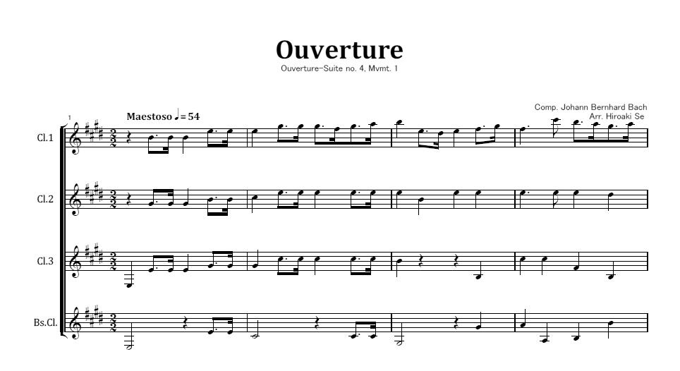 クラリネット四重奏 オーヴァーチュア・スイート第4番から第1楽章
