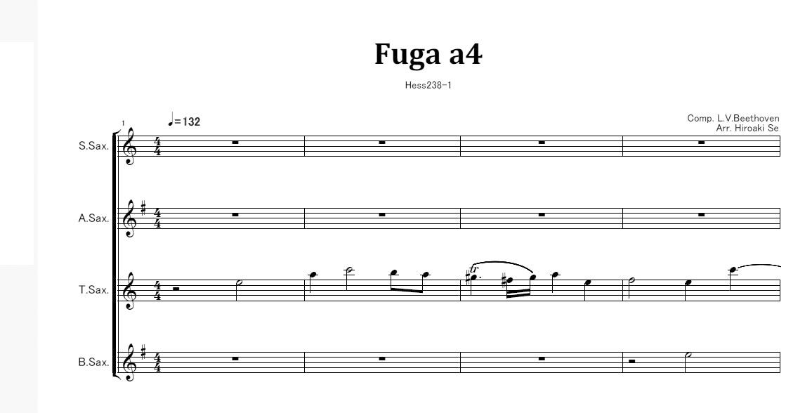 サックス四重奏 四声のフーガHess 238-1