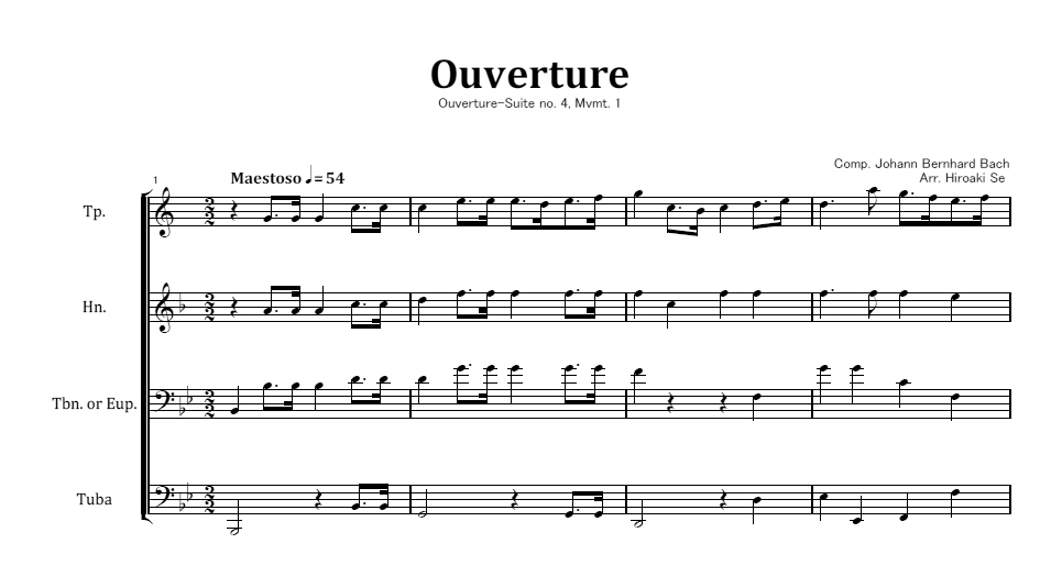 編成はTp.、Hn.、Tbn.またはEup.、Tubaです。