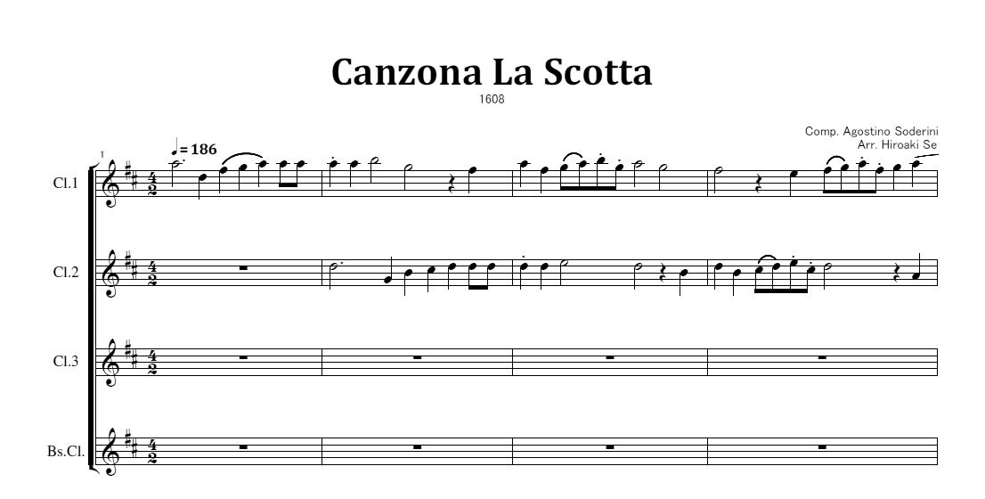 クラリネット四重奏 カンツォーナ〈ラ・スコッタ〉楽譜