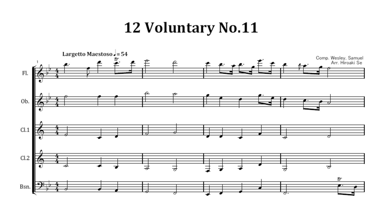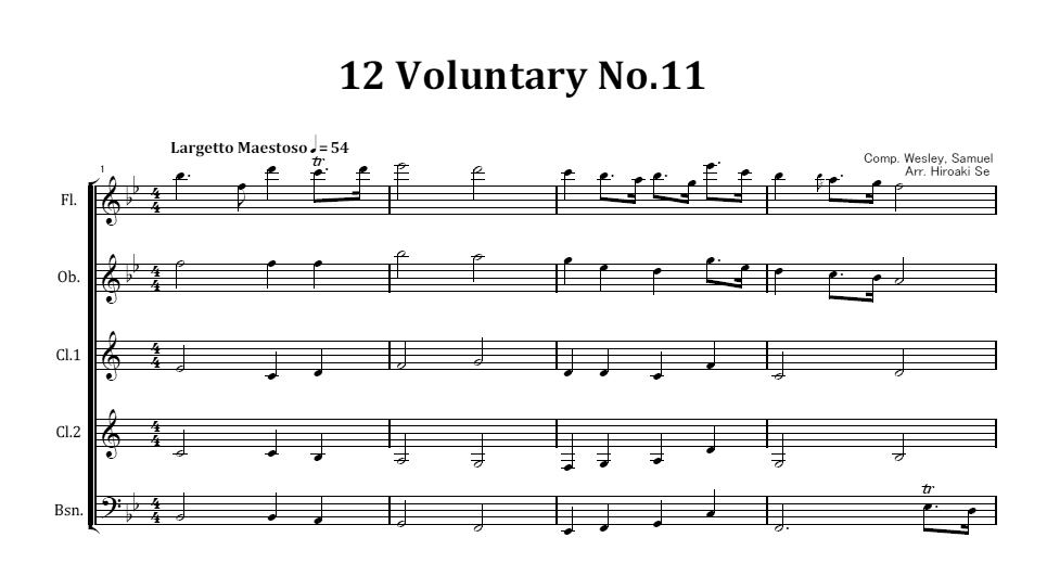 木管五重奏 12のヴォランタリーから第11曲 楽譜
