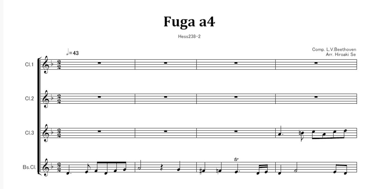クラリネット四重奏 四声のフーガHess 238-2 楽譜