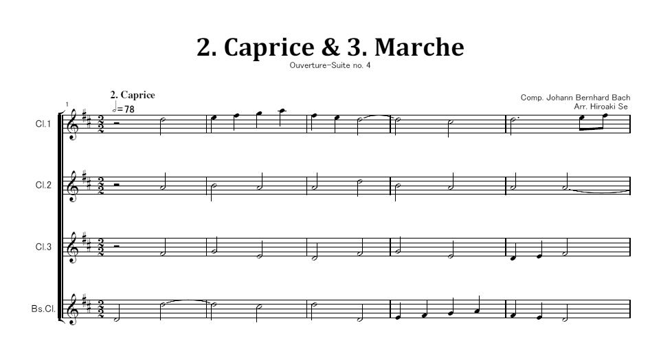 クラリネット四重奏 オーヴァーチュア・スイート第4番から第2.3楽章