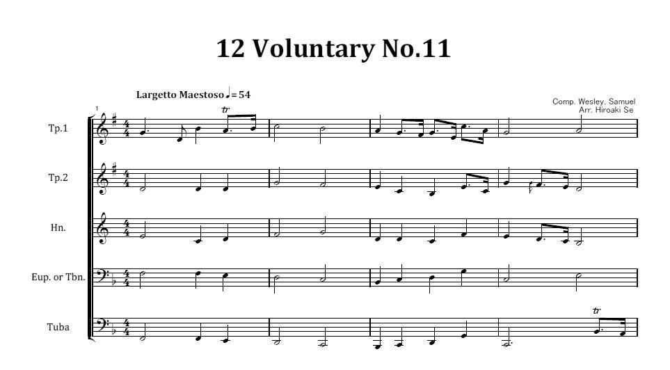 金管五重奏 12のヴォランタリーから第11曲 楽譜
