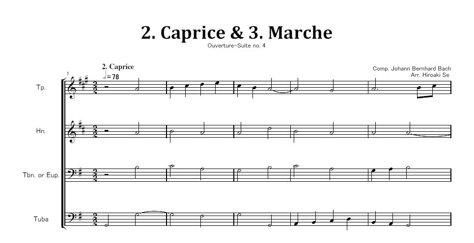 編成はTp.、Hn.、Tbn.またはEup.、Tubaです。