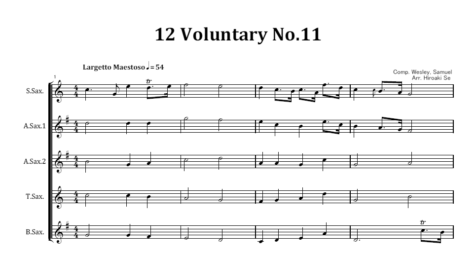 サックス五重奏 12のヴォランタリーから第11曲
