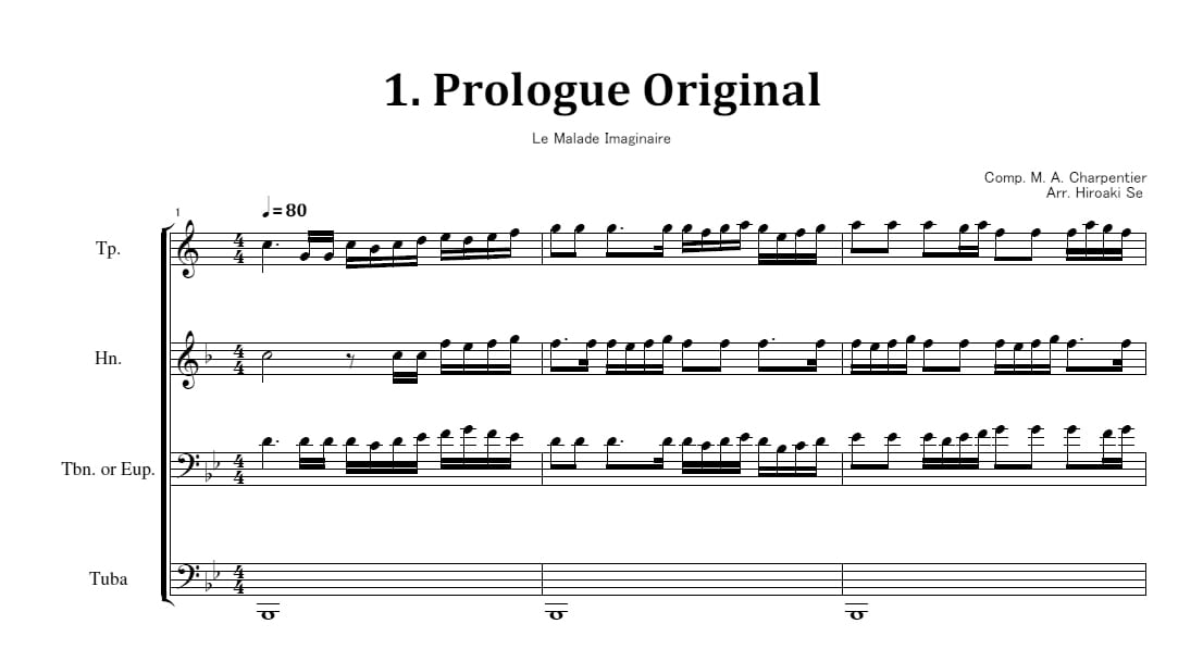 編成はTp.、Hn.、Tbn.またはEup.、Tubaです。