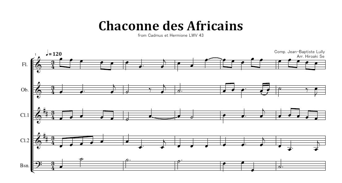 木管五重奏 アフリカ人のシャコンヌ 楽譜