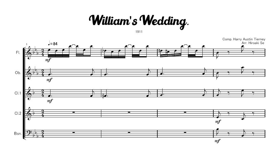木管五重奏 ウィリアムの結婚式 楽譜