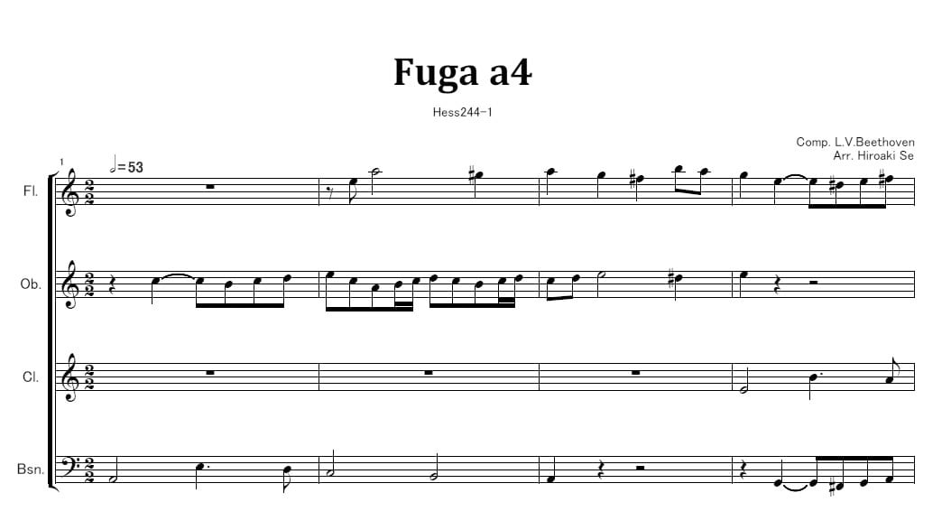 木管四重奏 四声のフーガHess 244-1 楽譜