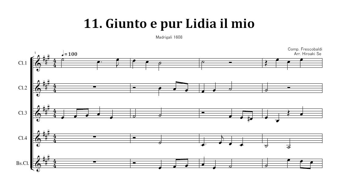 クラリネット五重奏 マドリガーレ集から第11番 楽譜