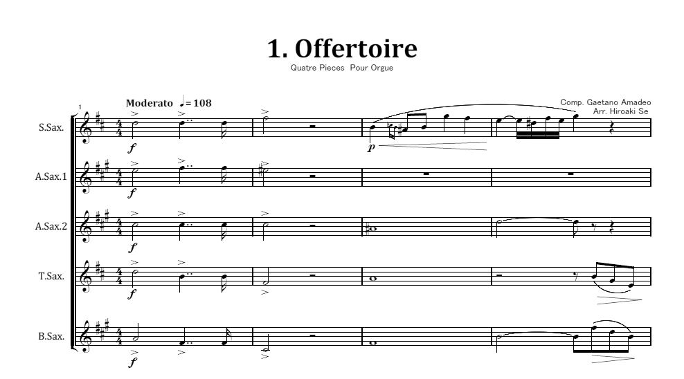 サックス五重奏 4つの小品から 1. オッフェルトワール