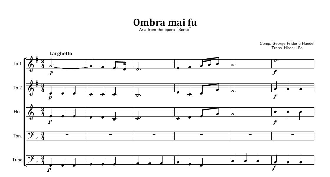 金管五重奏 ヘンデル:ラルゴ(オンブラ・マイ・フ)