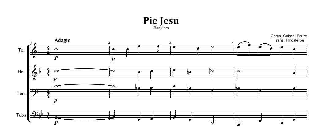 合唱は男声合唱と少年合唱で歌われ、『ピエ・イエス』もボーイソプラノを意識した音域で書かれています。