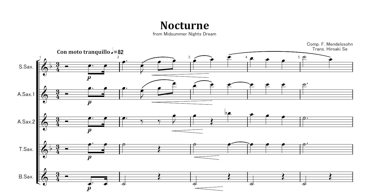 サックス五重奏:『夏の夜の夢』から〈夜想曲〉