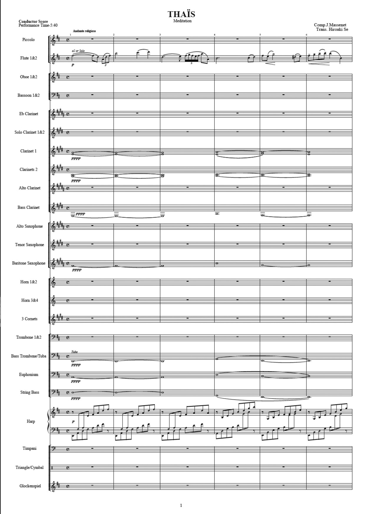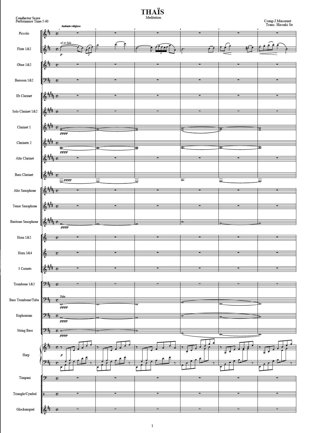 タイスの瞑想曲("Meditation")吹奏楽譜