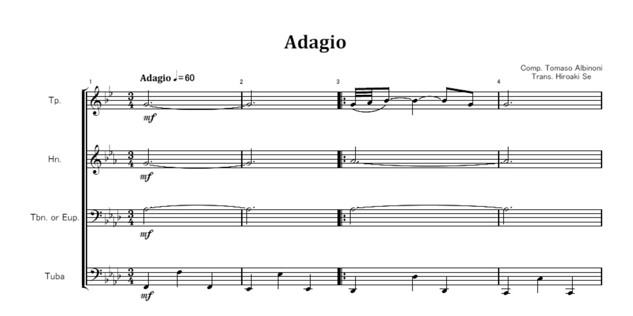 編成はTp.、Hn.、Tbn.またはEup.、Tubaです。