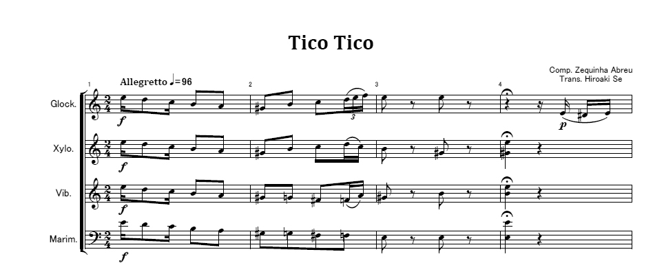 編成はGlock.、Xylo.、Vib.、Marim.です。
