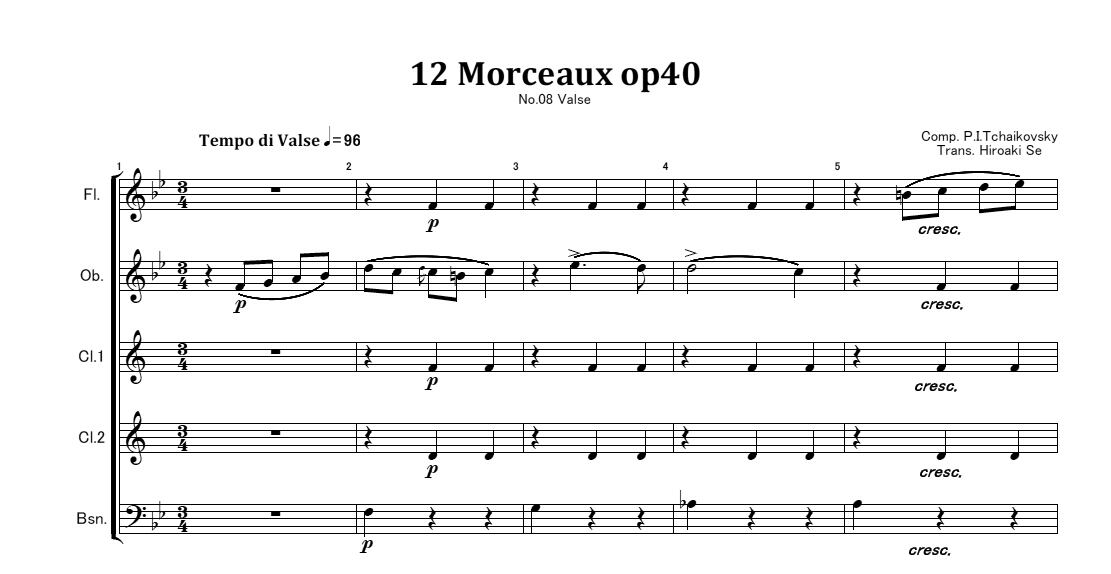木管五重奏 チャイコフスキー「12の小品」第8曲 ワルツ