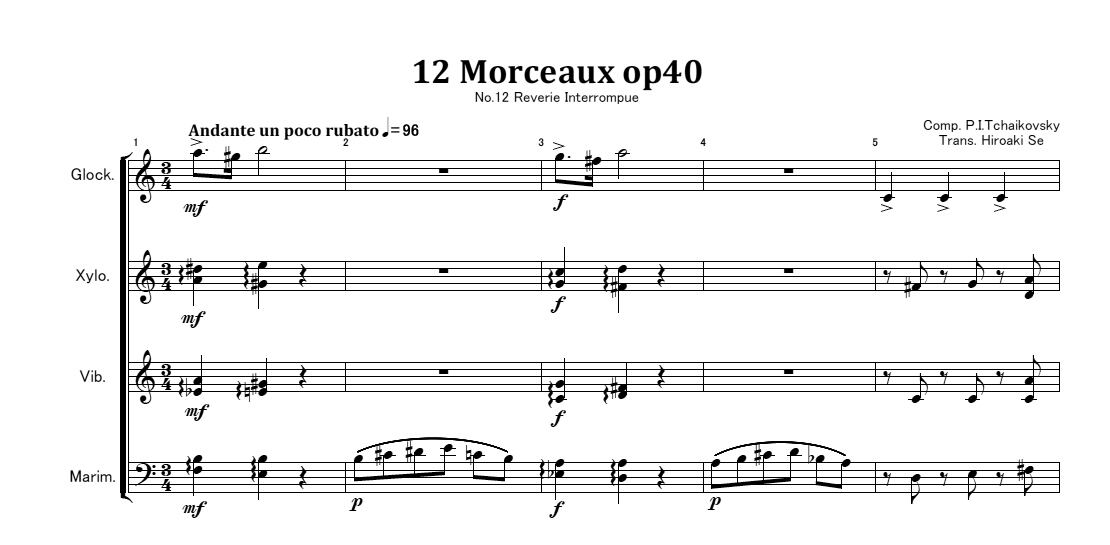打楽器四重奏 チャイコフスキー「12の小品」第12曲 とぎれた夢