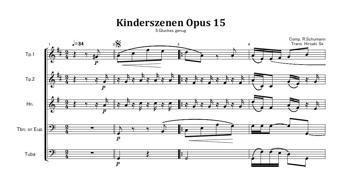 編成はトランペット2本、トロンボーンまたはユーフォニアム、チューバです。