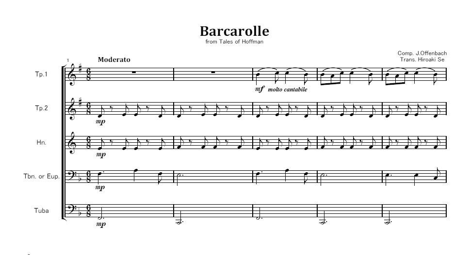 金管五重奏 ホフマンの舟歌 オッフェンバック