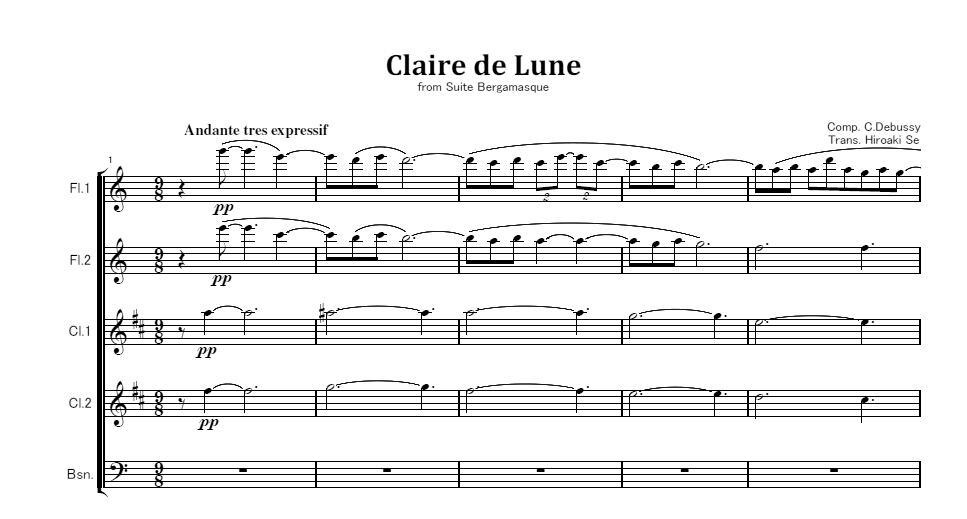 木管五重奏 ドビュッシー :ベルガマスク組曲〔第三曲〕月の光