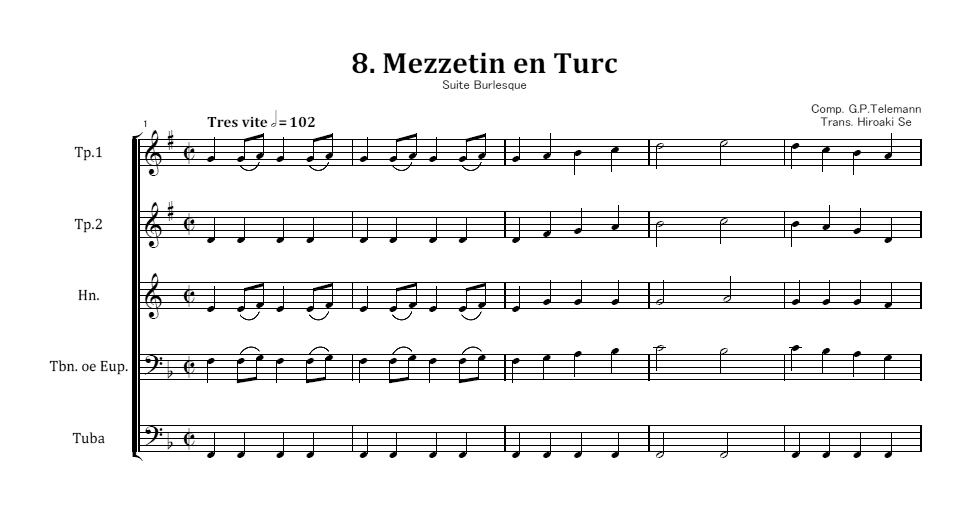編成はTp.2本、Hn.、Tbn.またはEup.、Tubaです。