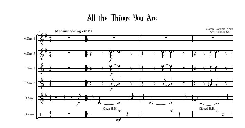 サックス五重奏+ドラムセット「オール・ザ・シングス・ユー・アー」All The Things You Are