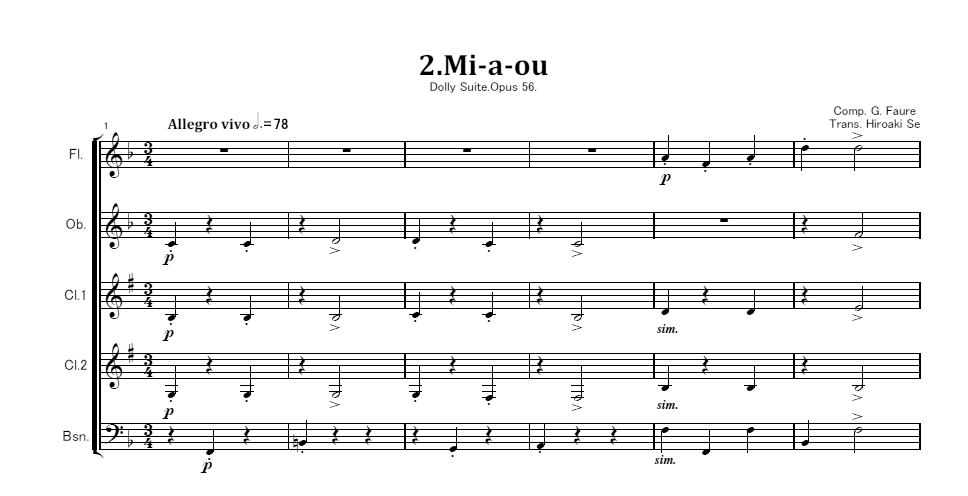 木管五重奏 組曲「ドリー」から 2.ミ・ア・ウ(フォーレ)